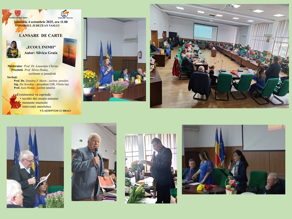Într-o zi mohorâtă de toamnă, pe o ploaie ce tot bătea în rafale, iubitorii de cultură s-au îndreptat cu pași grăbiți spre sediul Consiliului Județean Vaslui. Aici a avut loc un eveniment cultural deosebit, organizat în parteneriat cu Liga Scriitorilor Români – Filiala Iași.