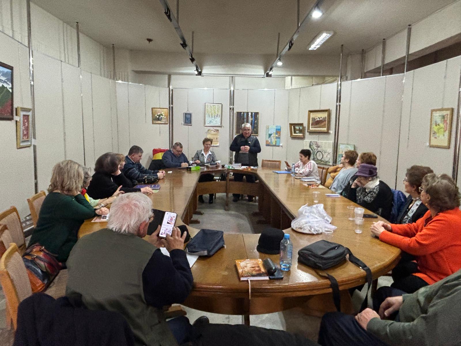 În separeul deschis al galeriei, ca un mic sanctuar al dialogului, se afla o masă ovală, impunătoare, din lemn greu, lustruit de ani și de mâini. Ne-am așezat de-a lungul ei, fiecare găsindu-și locul firesc, într-o așezare care nu avea nimic rigid, ci doar liniștea unei întâlniri ce știe să-și pregătească singură decorul.