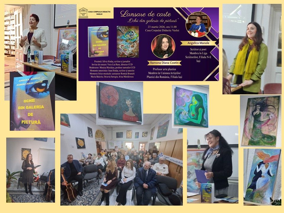23 martie 2026. O frumoasă zi de primăvară, în care soarele își revărsa razele peste tot. La Casa Corpului Didactic Vaslui s-a desfășurat un eveniment deosebit: o lansare de carte însoțită de o impresionantă expoziție de lucrări artistice. Această instituție nu are doar un rol esențial în formare continuă, dezvoltarea profesională și sprijinul metodologic al cadrelor didactice, ci facilitează și organizarea unor evenimente culturale, precum lansări de carte și expoziții de pictură. Prin punerea la dispoziție a spațiilor necesare, instituția sprijină accesul autorilor și artiștilor, în special din rândul profesorilor și elevilor.
